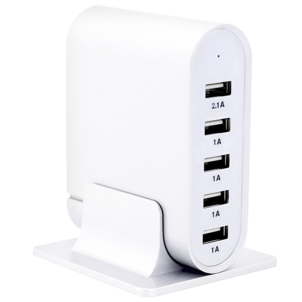 7.1 Amps 5 Port Universal USB Compact Charging Station in White Finish