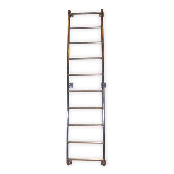 Fixed Ladder, Walk-Thru Included No, Exit Side Step, Overall Height 10 ft, Overall Width 21.1 in, Material Aluminum, Load Capacity 300 lb, Number of Steps 10, Top Step Height 9 ft, Rung Dia. 3/4 in, Rung/Step Spacing 12 in, Step Width 18 in, Finish Aluminum, Standards ANSI, OSHA Compliant, Manufacturers Warranty Length 1 yr, Handrail Height Not Applicable