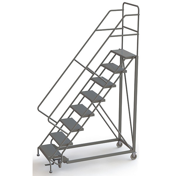 Configurable Rolling Ladder, Material Steel, Platform Height 6.7 ft, Handrails Included Yes, Handrail Height 3 ft, Overall Height 10.2 ft, Number of Steps 8, Unassembled, Load Capacity 450 lb, Step Tread Perforated, Platform Depth 17 in, Platform Width 24 in, Bottom Width 35 in, Base Depth 82 in, Overall Width 35 in, Climbing Angle 50 Degrees , Step Depth 8.5 in, Step Width 24 in, Ladder Actuation Foot Activated Step Lock, Finish Powder Coated, Color Gray, Standards ANSI, OSHA Compliant