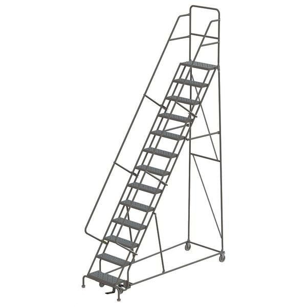 166 in H Steel Rolling Ladder, 13 Steps, 450 lb Load Capacity