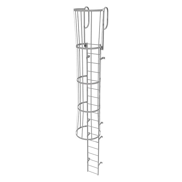 21 ft Overall H, Fixed Ladder with Safety Cage, Steel, 18 Steps, Top Exit, 500 lb Load Capacity