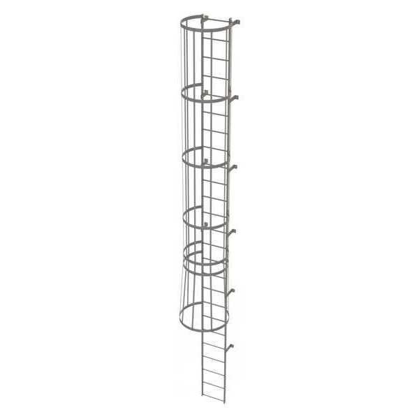 Fixed Ladder with Safety Cage, Walk-Thru Included No, Exit Top, Overall Height 24 ft, Overall Width 18 in, Material Steel, Load Capacity 500 lb, Number of Steps 25, Top Step Height 24 ft, Rung Dia. 3/4 in, Rung/Step Spacing 12 in, Step Width 18 in, Finish Powder Coated, Standards ANSI, OSHA Compliant, Manufacturers Warranty Length 1 yr, Handrail Height Not Applicable