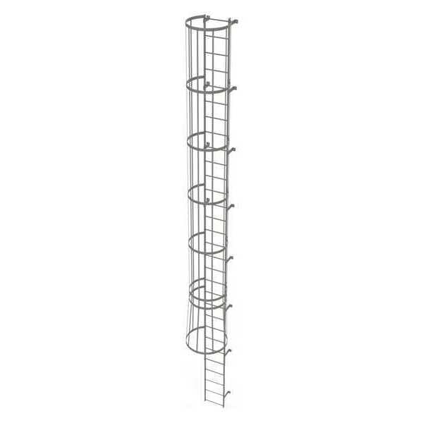 29 ft Overall H, Fixed Ladder with Safety Cage, Steel, 30 Steps, Top Exit, 500 lb Load Capacity