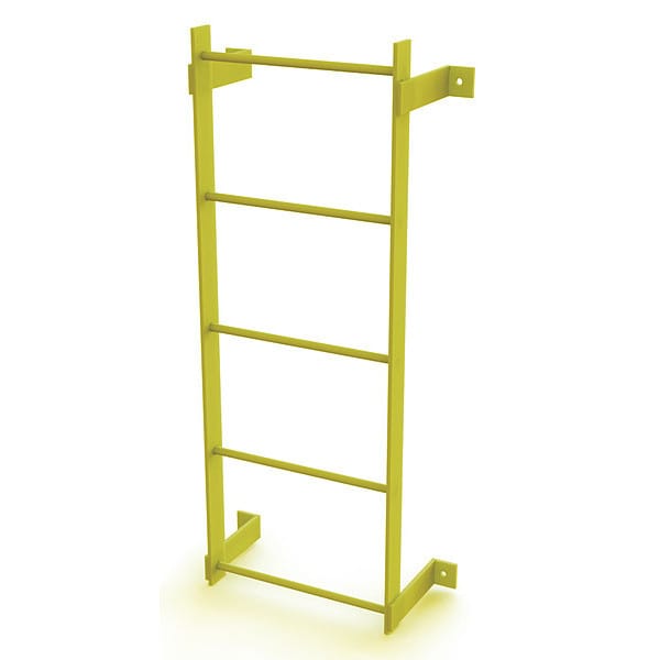 Fixed Ladder, Walk-Thru Included No, Exit Top, Overall Height 5 ft, Overall Width 25 in, Material Steel, Load Capacity 500 lb, Number of Steps 5, Top Step Height 4 ft, Rung Dia. 3/4 in, Rung/Step Spacing 12 in, Step Width 18 in, Finish Safety Yellow, Standards ANSI; OSHA Compliant, Manufacturers Warranty Length 1 yr
