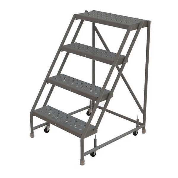 Rolling Ladder, Material Steel, Platform Height 3.3 ft, Handrails Included No, Handrail Height Not Applicable, Overall Height 3.3 ft, Number of Steps 4, Unassembled, Load Capacity 450 lb, Step Tread Perforated, Platform Depth 10 in, Platform Width 24 in, Bottom Width 30 in, Base Depth 35 in, Overall Width 30 in, Climbing Angle 56 Degrees , Step Depth 7 in, Step Width 24 in, Ladder Actuation Spring-Loaded Casters, Finish Powder Coated, Color Gray, Standards ANSI, OSHA Compliant