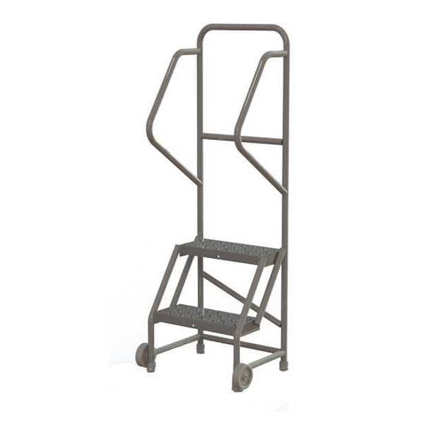 Tilt and Roll Ladder, Material Steel, Platform Height 1.7 ft, Handrails Included Yes, Handrail Height 3 ft, Overall Height 5.2 ft, Number of Steps 2, Unassembled, Load Capacity 450 lb, Step Tread Perforated, Platform Depth 10 in, Platform Width 16 in, Bottom Width 23 in, Base Depth 23 in, Overall Width 23 in, Climbing Angle 56 Degrees , Step Depth 7 in, Step Width 16 in, Ladder Actuation None, Finish Powder Coated, Color Gray, Standards ANSI, OSHA Compliant, Includes Crutch Tips