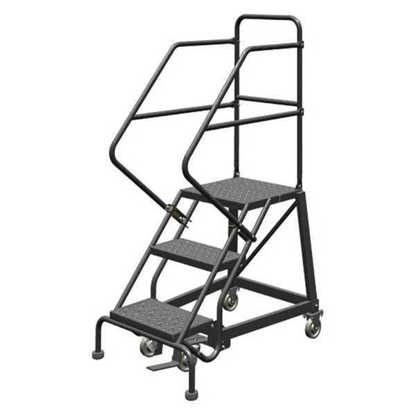 Rolling Ladder, Material Steel, Platform Height 2.5 ft, Handrails Included Yes, Handrail Height 3 ft, Overall Height 5.5 ft, Number of Steps 3, Unassembled, Load Capacity 450 lb, Step Tread Perforated, Platform Depth 17 in, Platform Width 16 in, Bottom Width 27 in, Base Depth 41 in, Overall Width 27 in, Climbing Angle 50 Degrees , Step Depth 8.5 in, Step Width 16 in, Ladder Actuation Foot Activated Step Lock, Finish Powder Coated, Color Gray, Standards ANSI, OSHA Compliant