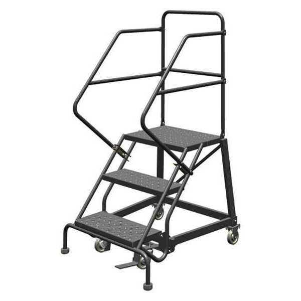 Rolling Ladder, Material Steel, Platform Height 2.5 ft, Handrails Included Yes, Handrail Height 3 ft, Overall Height 5.5 ft, Number of Steps 3, Unassembled, Load Capacity 450 lb, Step Tread Perforated, Platform Depth 17 in, Platform Width 24 in, Bottom Width 35 in, Base Depth 41 in, Overall Width 35 in, Climbing Angle 50 Degrees , Step Depth 8.5 in, Step Width 24 in, Ladder Actuation Foot Activated Step Lock, Finish Powder Coated, Color Gray, Standards ANSI, OSHA Compliant