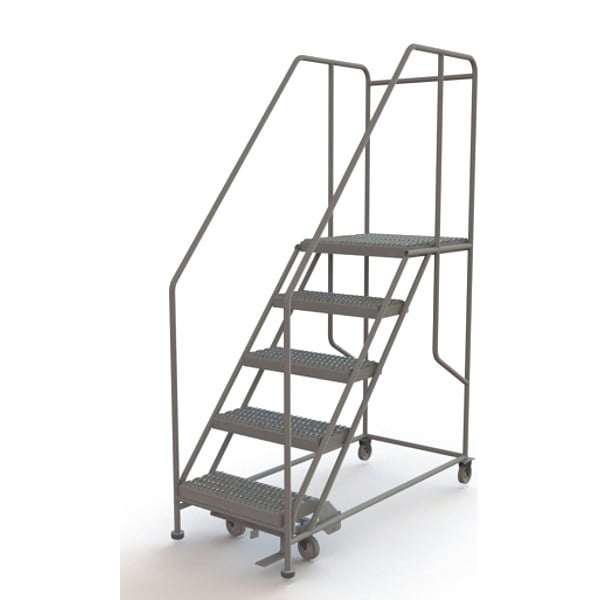 Single Access Rolling Platform, Material Steel, Platform Style Single Access, Platform Height 50 in, Load Capacity 800 lb, Number of Modular Decks 1, Base Depth 60 in, Bottom Width 35 in, Platform Depth 24 in, Platform Width 24 in, Overall Height 7 ft 2 in, Handrail Height 3 ft, Number of Guard Rails 3, Number of Legs Not Applicable, Number of Steps 5, Step Width 24 in, Step Depth 10 in, Climbing Angle 50 Degrees , Step Tread Serrated, Color Gray, Finish Powder Coated