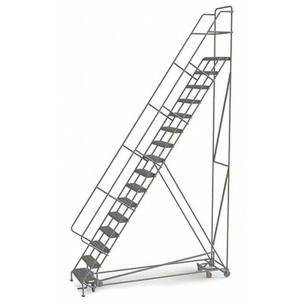 All Direction Ladder, Platform Height 160 in, Handrail Height 36 in, Overall Height 196 in, Platform Depth 10 in, Platform Width 24 in, Bottom Width 40 in, Base Depth 117 in, Overall Width 43 in, Climbing Angle 56 Degrees , Finish Powder Coated, Color Gray, Includes 2-1/2 in Rubber Pads, Manufacturers Warranty Length 1 yr, Rear Exit No