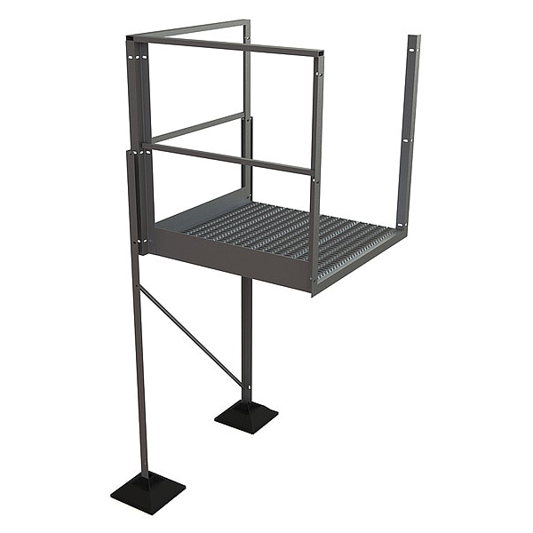 Item Turn Platform, Platform Height 5 ft, Vertical Clearance 57 1/2 in, Platform Width 36 in, Load Capacity 500 lb, Step Tread Serrated, Material Aluminum, Configurable Platform Series U-Design Rooftop Platforms, Platform Length 40 in, Color Silver, Finish Unfinished, Handrail Height 3.5 ft, Manufacturers Warranty Length 1 yr, Overall Height 8.5 ft, Standards ANSI, OSHA Compliant