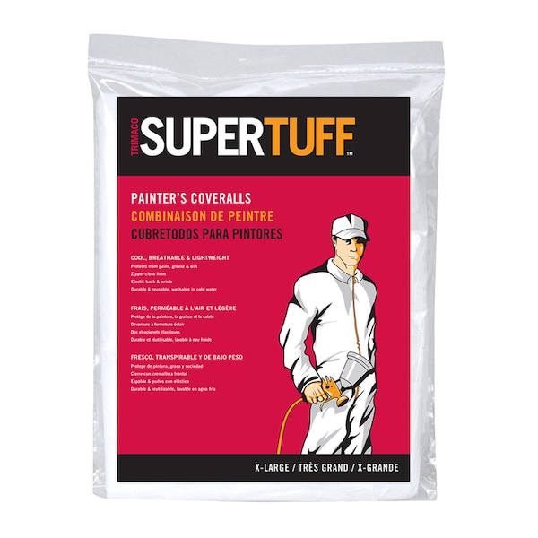 Trimaco Super Tuff Painter’s Coveralls are made from a special non-woven polypropylene fabric that protects from paint, grease and dirt. Cool, breathable and lightweight, these durable coveralls can be washed in cold water and reused. Features a zippered front and elastic back and wrists. Legs can be cut to fit any height.