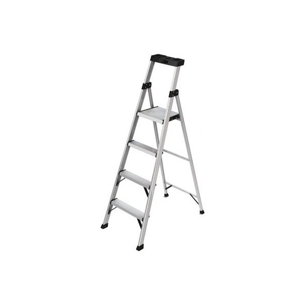 Rubbermaid, 55', Lightweight Aluminum Hybrid Ladder, Alternative To The Heavy Hard To Use Traditional Stepladder, Oversized Top Step For Extreme Comfort Stability When Climbing Or Standing, Durable Strong, Weighing Under 12 LB, ANSI Type 1 Duty Rating, 250 LB Capacity, BuiltIn Project Top Is Perfect For Holding Tools, Hardware Other Materials While You Are Working, 1 Handed Set Up Folding, For Added Stability With Large NonSlip NonMarring Feet To Keep It In Place Will Make You Feel Safe Comfortable Getting To Those Hard To Reach Places