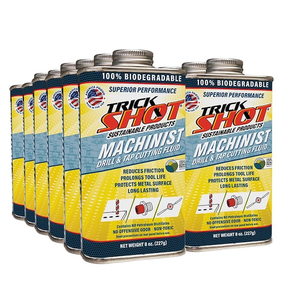Bio-based Trick Shot Sustainable Products Machinist Drill & Tap Cutting Fluid can be used for all of your metal drilling, tapping, and cutting applications. Trick Shot Machinist reduces friction for prolonged tool life, improves tool performance, helps eliminate tool chatter, and keeps tooling cooler. It is also 100% biodegradable, USDA Certified Bio preferred, nonflammable, NSF-H1 food-grade approved, non-toxic, EAL-VGP qualified, CA Prop 65 compliant, and safe for the environment. A 100% biodegradable product, Trick Shot Machinist is not harmful to the environment, thus making it ideal for agricultural, automotive, food processing, household, and industrial applications.