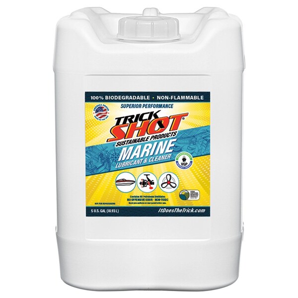 Use Trick Shot Marine Lubricant & Cleaner with confidence for all your tough applications to fight corrosion, clean & degrease, protect fiberglass, and lubricate. Trick Shot Marine Lubricant & Cleaner is 100% biodegradable and qualifies as a VGP environmentally acceptable lubricant, making it safe and hazard free for use around waterways.