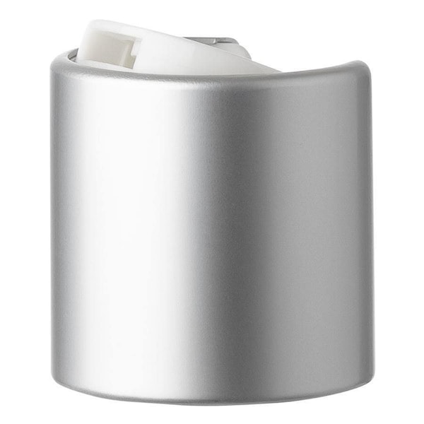 Press top closures, also known as disc top closures, are commonly used to dispense a variety of products. The smooth skirt provides an upscale look that is ideal for personal care products. This 24-410 neck finish press top dispensing closure is made of P/P polypropylene plastic and comes with a smooth skirt in a matte silver finish and a white flat press top. This dispensing closure is a great choice for dispensing products with thicker viscosities.
