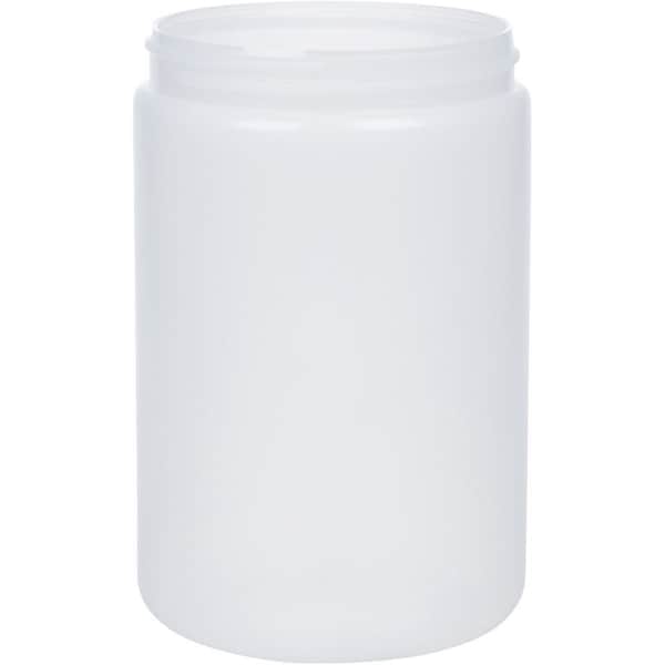 This straight sided jar has an 89-400 continuous thread neck finish. The natural color is translucent. The high density polyethylene (HDPE) resin is compatible with a wide range of products and offers a good moisture barrier.