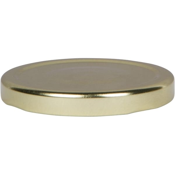 This 70-2030 gold metal lug twist closure has a vacuum button and a plastisol liner. Match this closure to a glass jar with a 70-2030 lug/twist neck finish to package pickles, peppers, sauces and other food products.