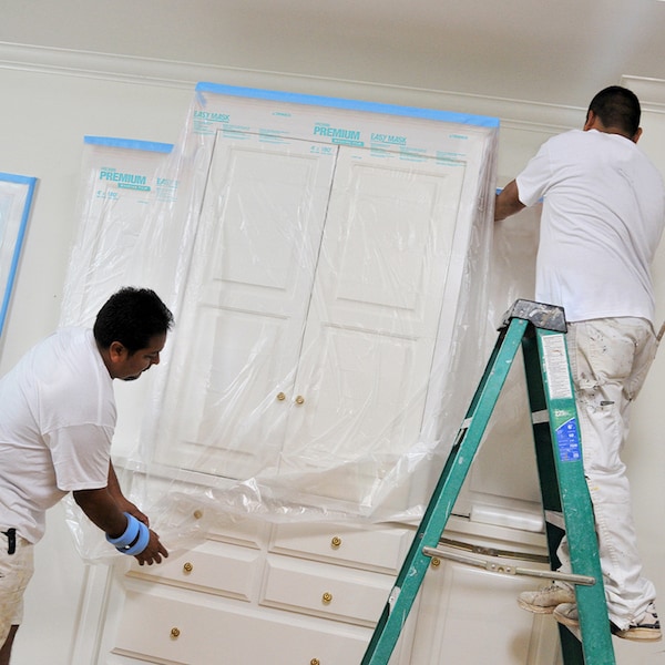 Trimaco’s Premium Masking Film makes painting cleaner, easier and faster! The light, yet durable plastic clings and protects most surfaces making it easier to mask-off hard to cover surfaces prior to painting or sanding. The Premium film is treated with a unique process that attracts paint overspray and also reduces flaking. Great for protecting areas from paint drips, overspray or dust from sanding. Available in a variety of sizes.