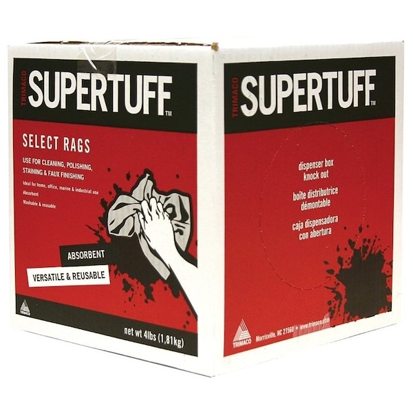 Trimaco SuperTuff pre-cut rag colored t-shirt knit rags. Absorbent and colorfast. Use throughout the home, office, marine and industry. Reusable and machine washable. Use for staining, polishing, cleaning and faux finishing.