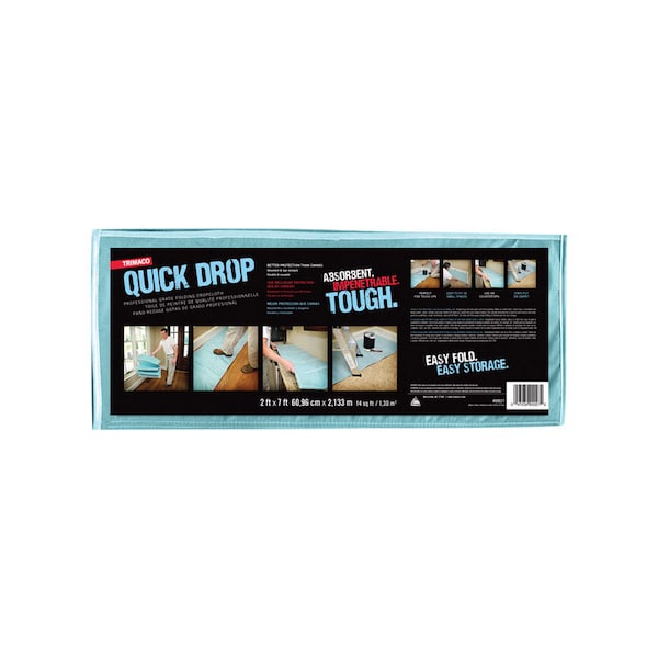 Trimaco's Quick Drop is an easy to use folding mat design. Easy to handle and maneuver simply drop, kick into place and start painting. Made of a revolutionary fabric with a specially engineered coating, Quick Drop is absorbent and impenetrable to paints, stains, solvents and more. Perfect for touch ups, punch lists and smaller projects, this durable drop cloth fits in hard to reach spaces and works great on counter tops, carpet, hardwoods, vinyl and tile floors.