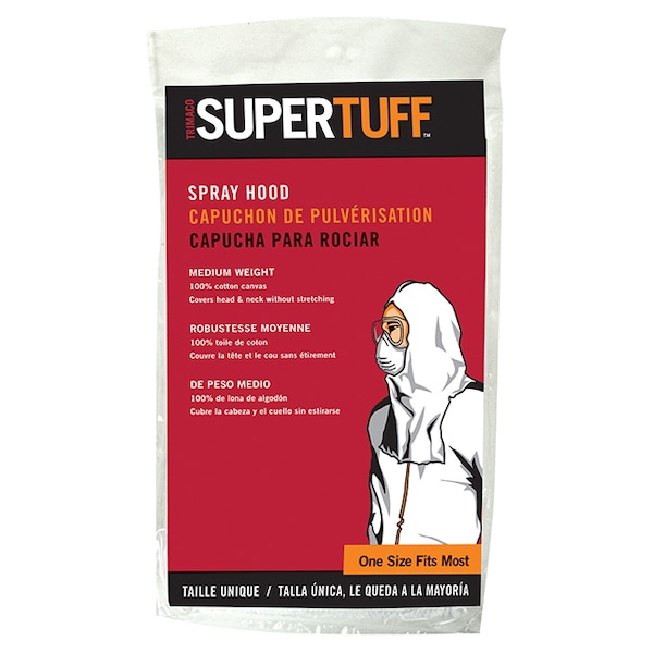 Medium-weight woven cotton spray hood provides comfortable protection against paint overspray without stretching. The stretch-to-fit, medium weight woven cotton hood is breathable, washable and protects hair and facial hair while covering nose, mouth and neck. Size fits most.