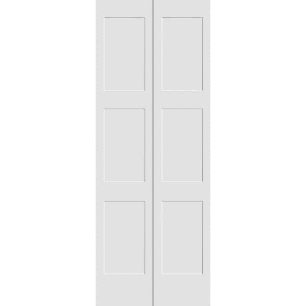 24" x 80" Primed 3-Panel Equal Panel Shaker Bifold Door and Hardware