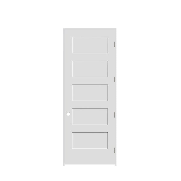 26"x96"x13/8" Primed 5Panel Equal Panel Interior Shaker 71/4" LH Prehung Door Satin Nickel Hinges