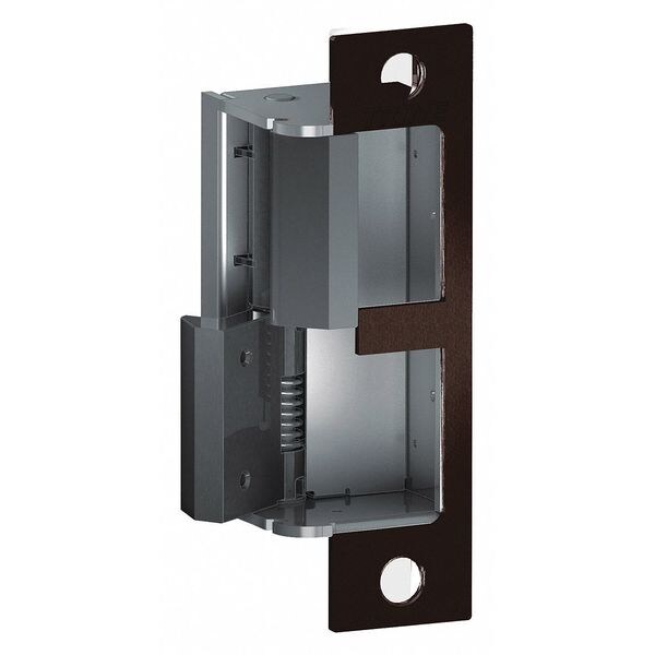 Electric Door Strike, For Use With Mortise/Cylindrical Locksets with Deadlatches, Performance Heavy-Duty, Failure Mode Fail Secure, Input Voltage 12V AC/DC, 24V AC/DC, Door Frame Type Aluminum/Hollow Metal/Wood, Faceplate Width 1 1/4 in, Faceplate Height 4 7/8 in, Faceplate Depth 1 5/8 in, Pull Force 3,250 lb, Grade 1, Fire Rated Yes, Finish Dark Bronze, Material Bronze, Bolt Throw 3/4 in, Strikes 1,000,000 Cycles, Features Left Handed