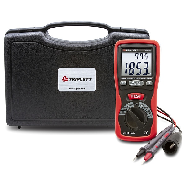 Megohmmeter, Backlit Digital Display Yes, Bluetooth Compatible No, CAT Safety Rating CAT III 1000V, Display Type Digital, Includes Carrying Case, Test Leads with Alligator Clip, Insulation Limit Alarm Yes, Maximum Insulation Resistance 2 gigohm, Minimum Insulation Resistance 200 ohm, Parameters Measured Insulation Resistance, Power Source Battery, Resistance Accuracy +/-3.00 Percent, Test Current 1 mA, Test Voltage 1,000V DC, 250V DC, 500V DC, Auto Power Off Yes, Auto Ranging No, Battery Size AA