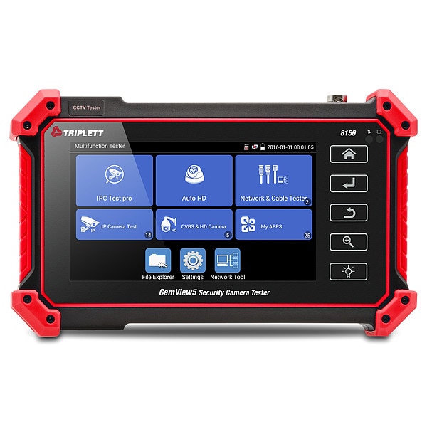 CamView IP Pro 5 Security Camera Tester, Testing Functions PTZ Control Test, Video Transmission, Display Size 5 in, For Use With AHD Cameras, Analog Cameras, CVI, IP Cameras, TVI, Input Type BNC, RJ45, RS485, Display Screen Type LCD Touchscreen, Battery Chemistry Lithium Ion, Compatible Camera Systems AHD, CVI, TVI