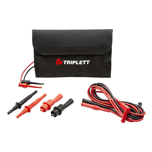 Test Lead Kit, For Use With Digital Multimeters, Test Instruments, Includes Nylon Mesh Carrying Case with 3 Clear Pockets, Length 3 1/2 ft, Maximum Voltage 1,000 V, Maximum Temperature Measurement Not Applicable, Minimum Temperature Measurement Not Applicable, Instrument Safety Rating CAT III 1000V, Test End Termination Probe, Maximum Current 10 A, Meter Connection End Size 4 mm, Wire Insulation PVC, Insulation Material ABS, Test End Insulation Material Nylon