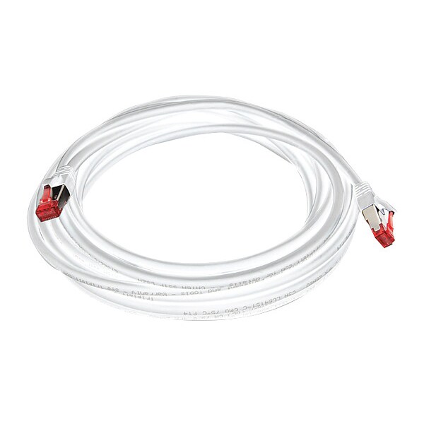 Voice and Data Patch Cable, Cable Shape Round, Conductor Gauge 26 AWG, Jacket Color White, Overall Length 25 ft, Performance Category 6A, Shielded Shielded, Fire Rating Commercial, Jacket Material LSOH/LSZH, Standards cETLus Listed, CM Rated, RoHS Compliant, TIA/EIA-568-C.2, UL Listed, Transmission Speed 10 GBps, NEC Article and Type 800 CMG, End 1 Boot Type Booted, End 2 Boot Type Booted, End 2 Connection Type RJ45, End 1 Connection Type RJ45, Maximum Operating Temperature 158 Degrees F