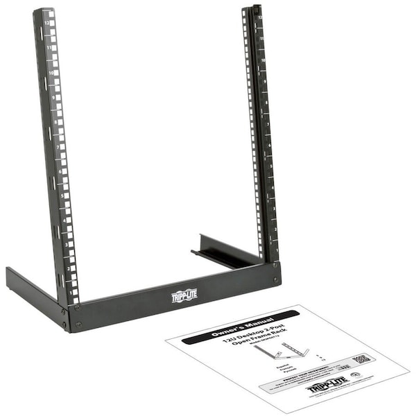 SmartRack 12U Desktop 2-Post Open-Frame Rack, (2) Uprights, (2) Base Brackets, Front Cross Member, (8) M5 Screws, 20 x M6 Screws, 20 x M6 Cage Nuts, 20 x M6 Cup Washers, (4) Rubber Feet, Owner's Manual