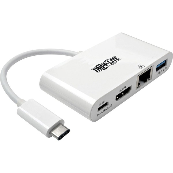 USB 3.1, generation 1 USB-C to HDMI adapter expands the potential of your tablet, laptop, Chromebook, MacBook, smartphone or PC's USB-C or Thunderbolt 3 port. Plug-and-play technology makes installation quick and simple - with no software or drivers to install. Fumble-free, reversible USB-C plug connects in either direction for a quick connection every time. With a source device that also supports USB DisplayPort Alternate Mode, you can extend video from your primary display to another, duplicate the same video on both displays, or change the second display to your primary. The HDMI port supports HD video resolutions up to 1920 x 1080 (1080p) at 60 Hz. Adapter is perfect for transmitting digital audio and 1080p video to a large display, adding a thumb drive or other USB peripheral, powering and charging a PD Charging-compliant mobile device, and connecting to a Gigabit Ethernet network all at the same time.