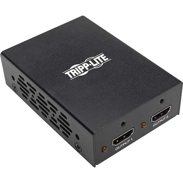 Two-Port HDMI splitter transmits Ultra High Definition (UHD) 4K x 2K audio/video (A/V) from an HDMI source to two HDMI displays at the same time. Plug-and-play technology makes installation quick and simple - with no software or drivers to install. Using standard 28 AWG HDMI cabling, this splitter can transmit full 3D and a 4K x 2K (3840 x 2160) signal up to 15'. It supports a wide range of audio formats, including DTS-HD, Dolby TrueHD, Dolby Digital Plus, and LPCM 7.1-channel surround sound as well as 36-bit Deep Color (12 bits per channel). Splitter also supports HDMI 2.0 and HDCP 2.2 to ensure its compatibility with the latest audio/video hardware.