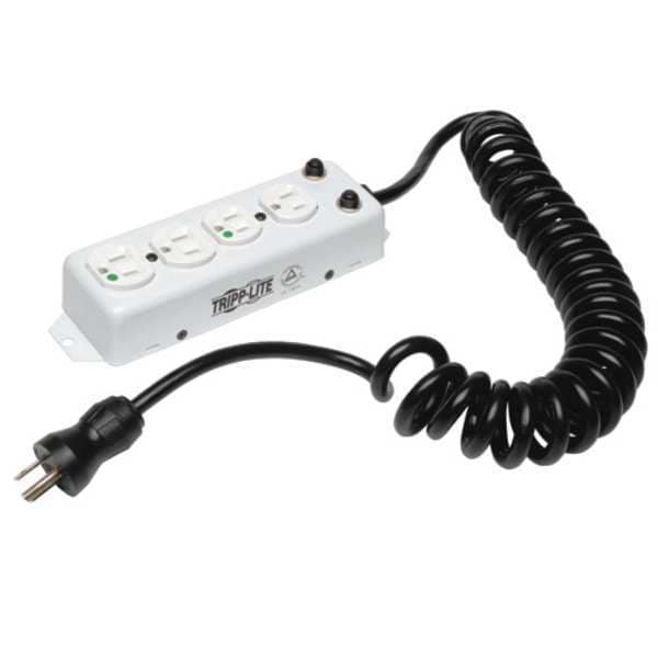 Outlet Strip, Application Healthcare Facility, Housing Material Metal, Total Number of Outlets 4, Max. Amps 15 A, Cord Length 10 ft, Number of Power Switches 0, Power Indicator No, Number of Outlet Rows 1, Receptacle Configuration Hospital Grade NEMA 5-15R, Plug Configuration Hospital Grade NEMA 5-15P, Wire Size 14 AWG, Mounting Style Keyhole, Color White, Medical Facility Use Patient Care - Only When Permanently Mounted (UL 1363A), Number of Transformer Outlets 2, Number of Conductors 3