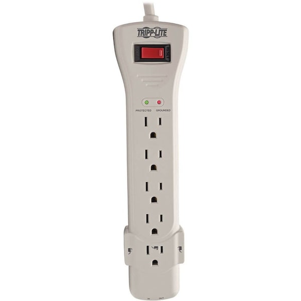 Outlet Strip, Surge, 5-15R, 5-15P, 7 ft., Light Gray
