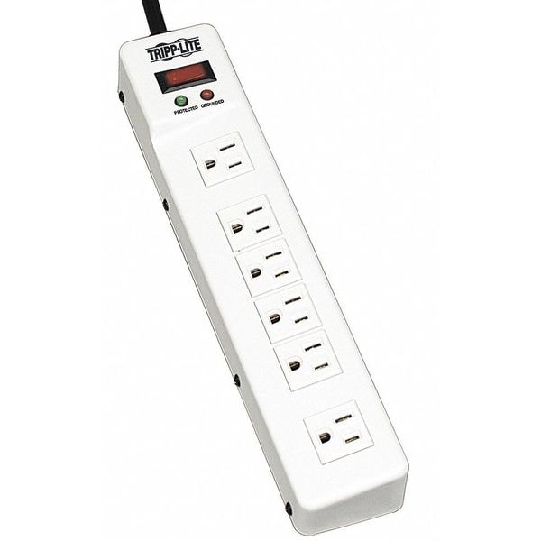 Outlet Strip, Surge, 6 5-15R, 5-15P, 6 ft., Light Gray