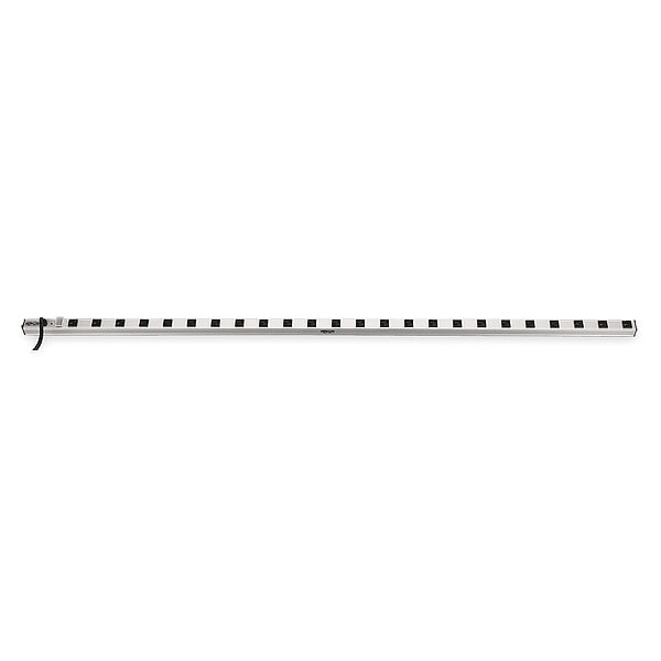 Outlet Strip, Application Workbench and Cabinet, Housing Material Aluminum, Total Number of Outlets 24, Max. Amps 20 A, Cord Length 15 ft, Number of Power Switches 1, Power Indicator Yes, Number of Outlet Rows 1, Receptacle Configuration (2) NEMA 5-20R, (22) NEMA 5-15R, Plug Configuration NEMA 5-20P, Wire Size 12 AWG, Mounting Style Clip, Color Gray, Medical Facility Use Outside Patient Care Areas (UL 1363), Number of Transformer Outlets 24, Number of Conductors 3, Voltage 120V AC