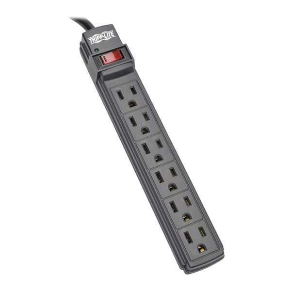 Power Strip, 5-15R, 5-15P, 6 ft., Black