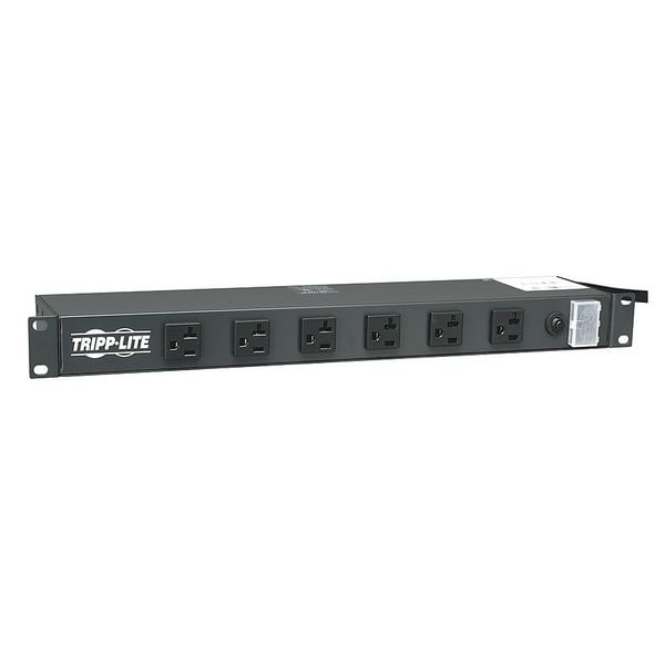 Power Distribution Unit, Built-In Circuit Breaker Yes, Color Black, Cord Length 15 ft, Number of Outlets 12, Receptacle Type NEMA 5-15/20R, Maximum Input Voltage 120V AC, Outlet Surge Protection No, Metered Non-Metered, Rack Units 1, Mounting Location Horizontal Rack, Wall, Plug Type NEMA L5-20P, Features Detachable Mounting Flanges, Under-Counter Mounting Option, Housing Material Metal, Maximum Current 20 A, Overall Height 1 3/4 in, Overall Length 4 1/2 in, Overall Width 17 1/2 in