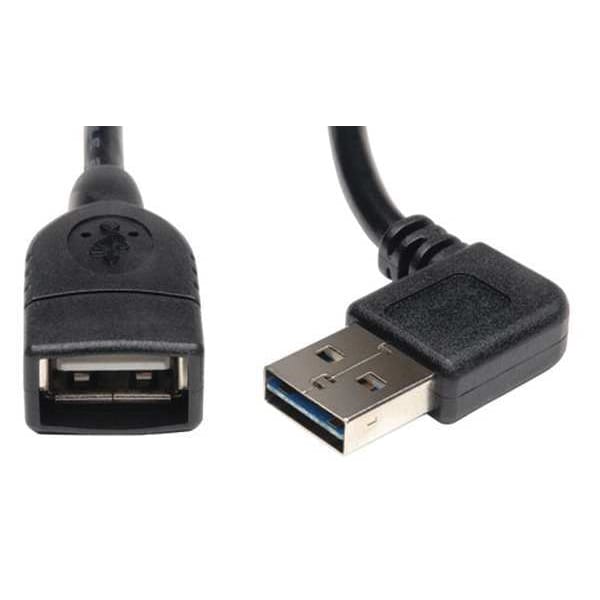 Right Angle USB Cable, USB Specification 2.0, 1 1/2 ft, Color Black, Connector Type A Male to A Female, Reversible A Connector Allows Plugging In Any Direction, Universal, For Use With Any Device with USB A-Female Port, CE, RoHS, UKCA Standards