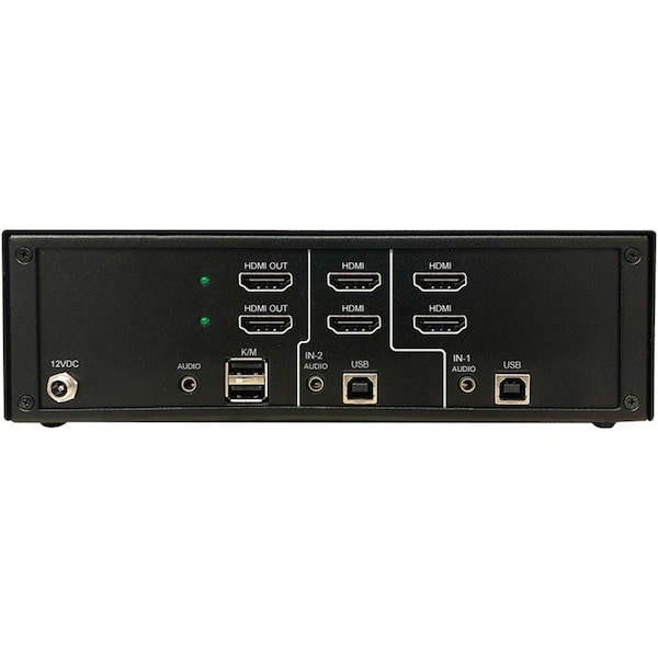 Secure KVM Switch, 2-Port, Dual Head, HDMI to HDMI, 4K, NIAP PP4.0, Audio, TAA, External power supply w/NEMA 1-15P plug (Input: 100-240V, 50/60 Hz, 1.3A; Output: 12V 3A). Included (4) interchangeable power supply heads (US, UK, EU & Australia), Owner's Manual