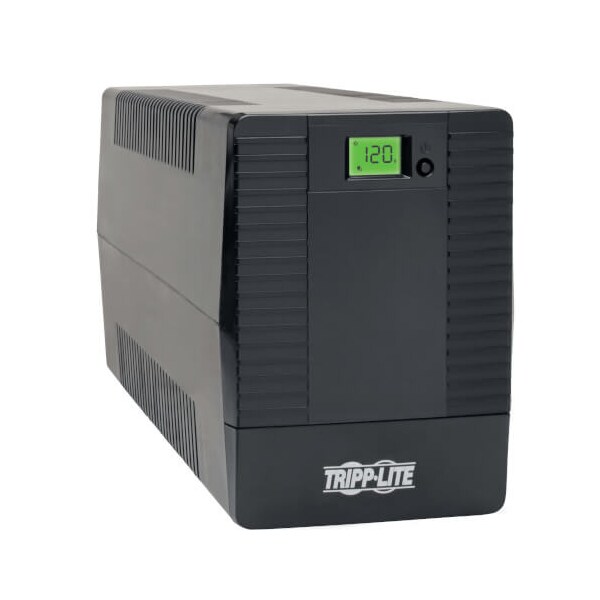 Touchscreen LCD reports input voltage, output voltage, load percentage, battery charge percentage and overload status
