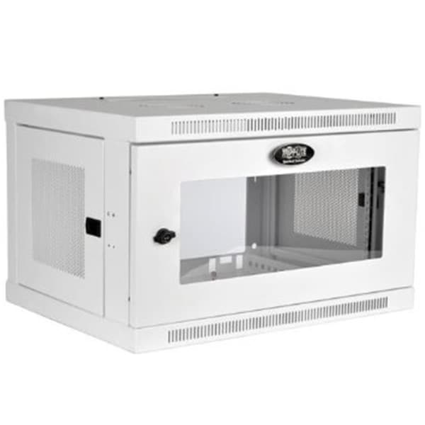 Features Front door includes shatter-resistant clear acrylic window Locking steel cabinet vented at sides, top and bottom Secures 6U of 19 in. rack equipment up to 16.5 in. deep Mounts to wall or rolls on floorwith optional SRCASTER PCI DSSPayment Card Industry Data Security Standard compliant Style - Glass Door Color - White Size - 6U