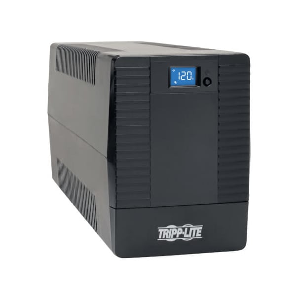 Touchscreen LCD reports input voltage, output voltage, load percentage, battery charge percentage and overload status