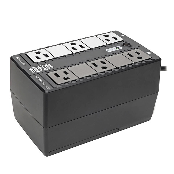 UPS System, Standby, Power Rating 350 VA, Wattage 180 W, Input Voltage 120V AC, Output Voltage 115V AC, 120V AC, Backup Time (Half/Full Load) 10 min/2.5 min, Mounting Desktop/Tower, Outlet Type UPS/Surge, Number of Outlets 6, Medical Grade Not Medical Grade Approved, NEMA Receptacle Configuration 5-15R, NEMA Plug Configuration 5-15P, Automatic Volts Regulation No, Fax/Modem Line Protection Yes, Transfer Time 2 to 4 msec, Width 8 in, Depth 6 in, Height 3 in, Cord Length 6 ft