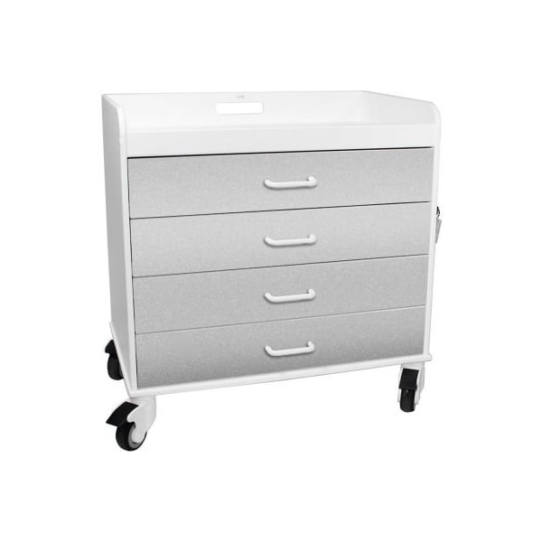 Extra Wide Compact 4 Drawer Locking Cart, Silver Metallic, 27inW x 19inD x 27inH