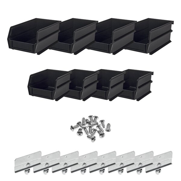 Hanging Bins and Bin Clip Kit, Polypropylene, Black, (4) Small and (4) Large